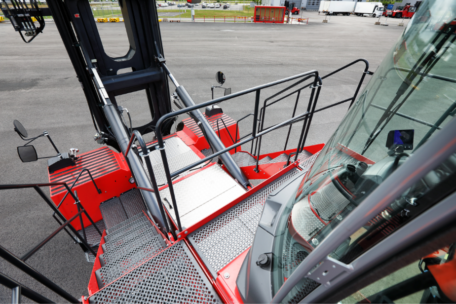 Vos conducteurs seront désormais plus en sécurité en entrant ou en sortant de leur gerbeur de conteneurs vides Kalmar, car il y a davantage de mains courantes et de barres, et toutes les surfaces d'escalade sont antidérapantes. Il y a également des marches sur le côté droit qui peuvent être utilisées pour entrer ou sortir de la cabine en cas d'urgence.