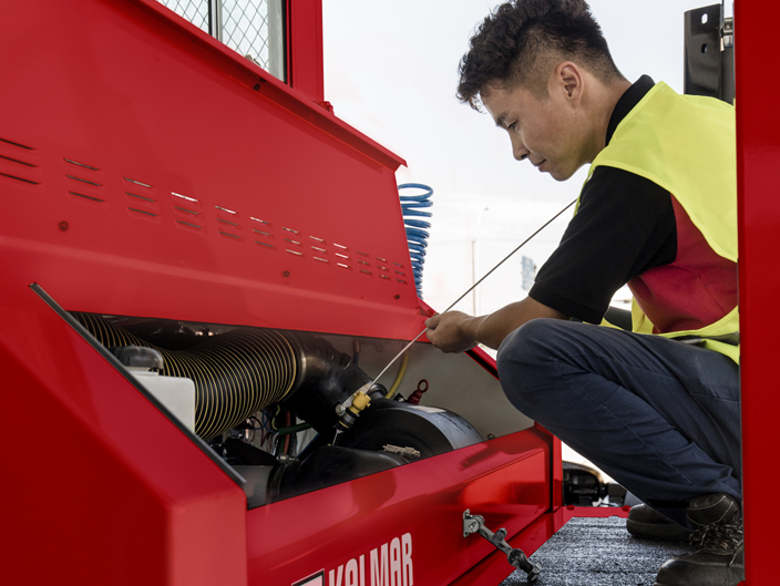 Grâce à la cabine qui se soulève facilement et tous les points de service accessibles depuis le sol, l'entretien est plus sûr et plus rapide.